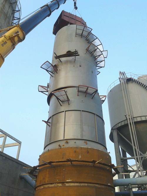 当天,在项目部的统一安排下,各相关班组井然有序、积极配合,项目部时时检查施工人员的安全装备及施工周边的安全设施,,为吊装工作的顺利进展提供了坚实人力资源和安全基础。18时,上半段塔体成功吊装到位,经过一个多小时段焊固定,吊车脱钩,标志着脱硫塔封顶工作的顺利完成,项目取得了阶段性的成果,推进了下一道工序的开展。为确保合同工期目标的圆满完成,我公司将再接再厉,为实现项目建设目标而继续努力。